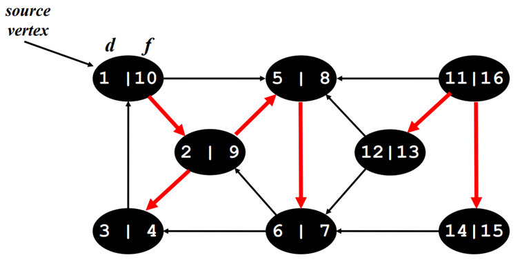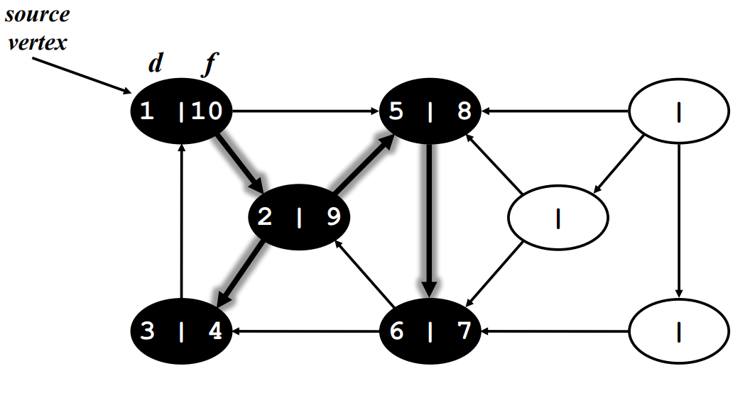 Finish : 자신의 노드 뿐만 아니라 연결된 노드들 모두 discovered 되었을 때 그 노드는 Finish 되었다고 함