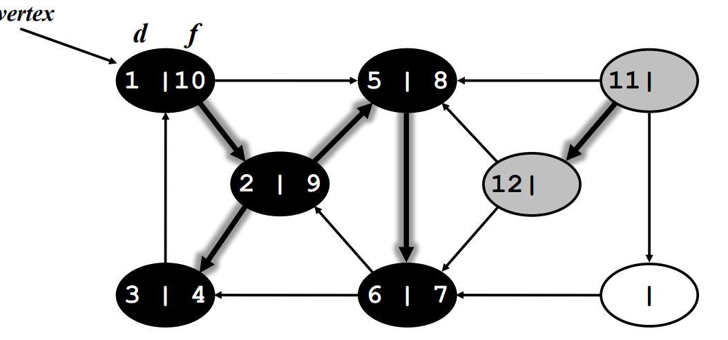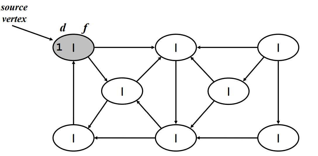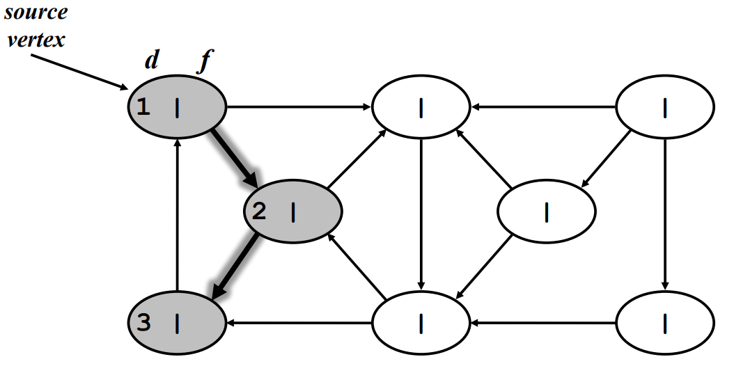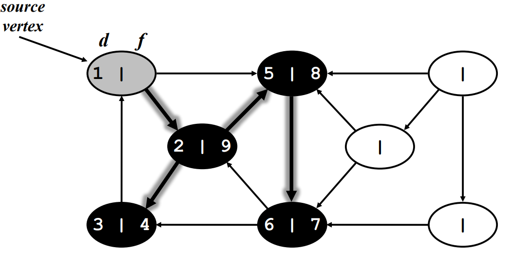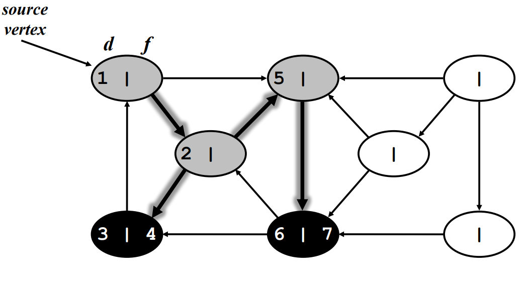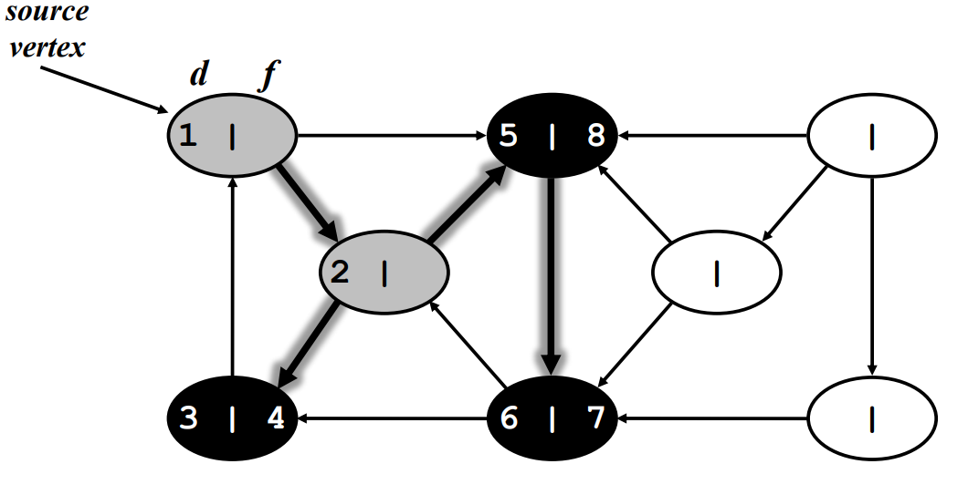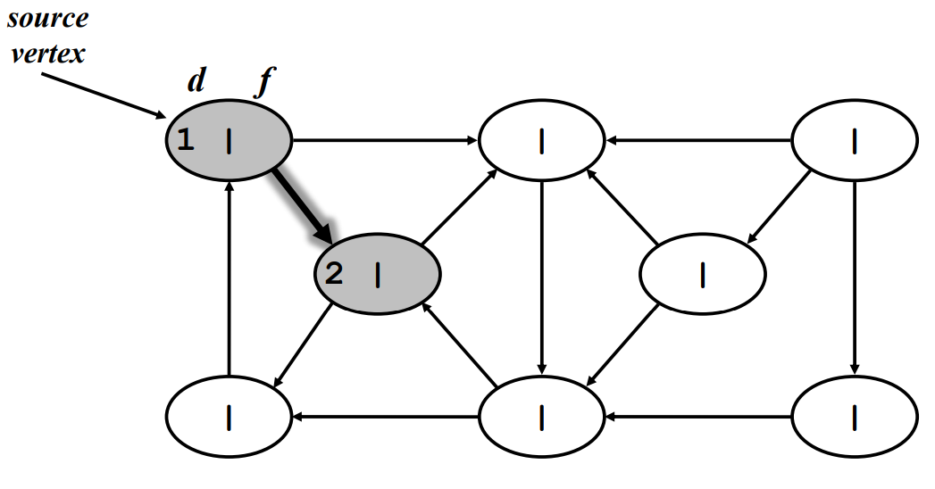discover 되었지만 연결 되어있는 vertex 중에 discover가 안된 vertex가 있는 경우 - 회색.
