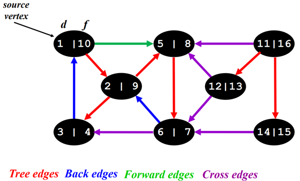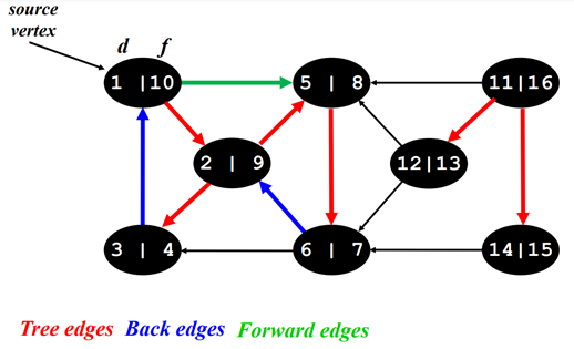 Back edge , forward edge , cross edge는 위의 조건을 만족하면서 tree edge가 아닌 edge이다.