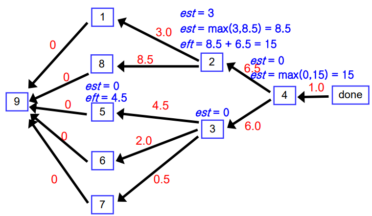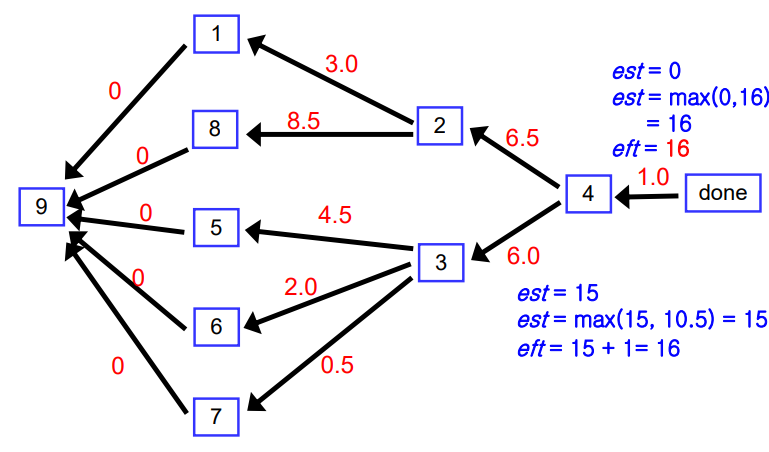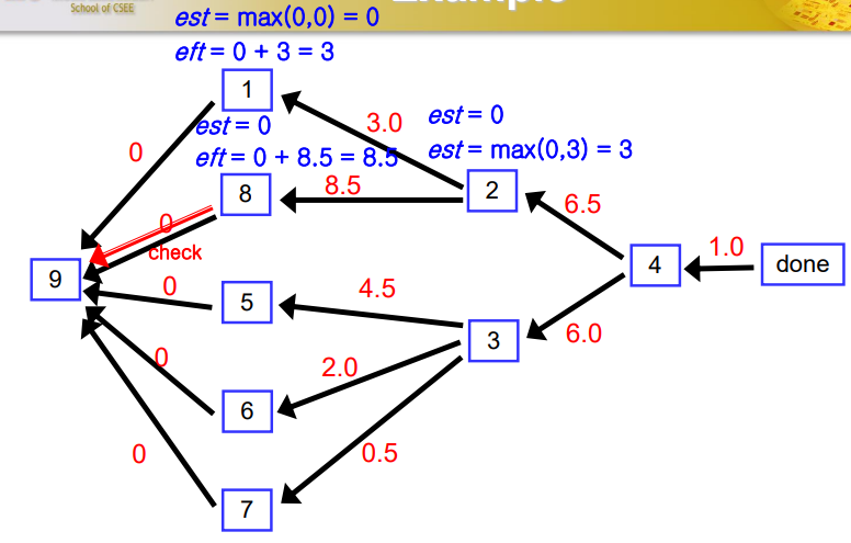 그리고 backtrack 하면서 est와 eft를 말했던 법칙에 따라 수정하는 것이다.