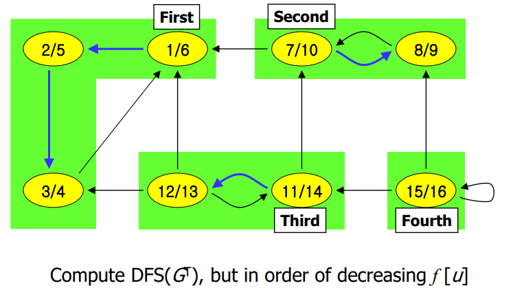 3. 1. 에서의 Finish Time이 컸던 순서대로 source vertex를 정해서 다시 DFS를 시작한다.