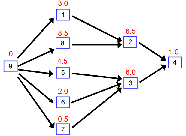 왼쪽 과 같은 문제가 있어서 Critical Path로 문제를 푸려고 한다.
