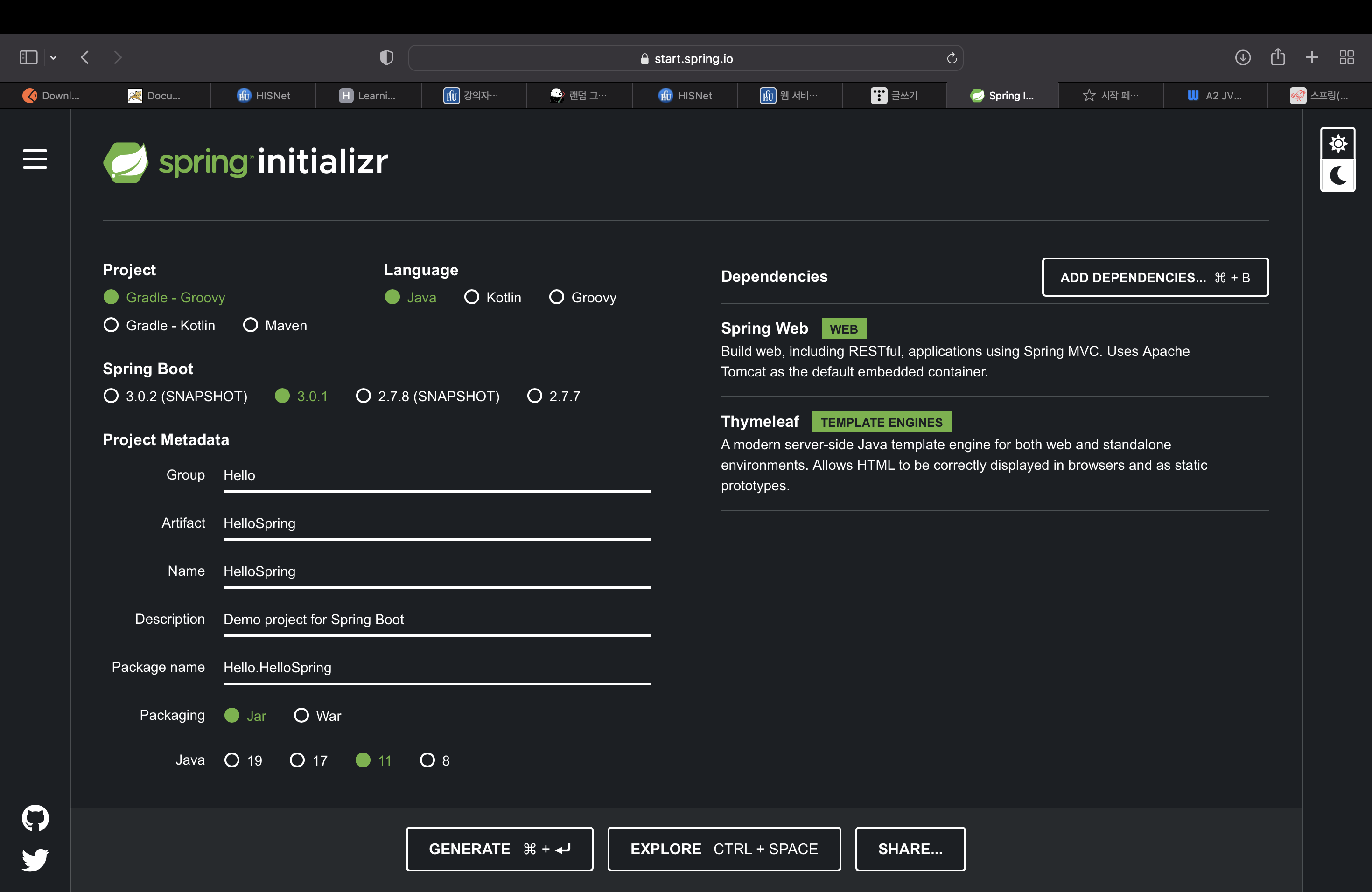 https://start.spring.io <- 링크
